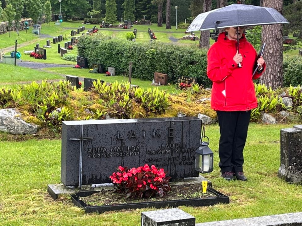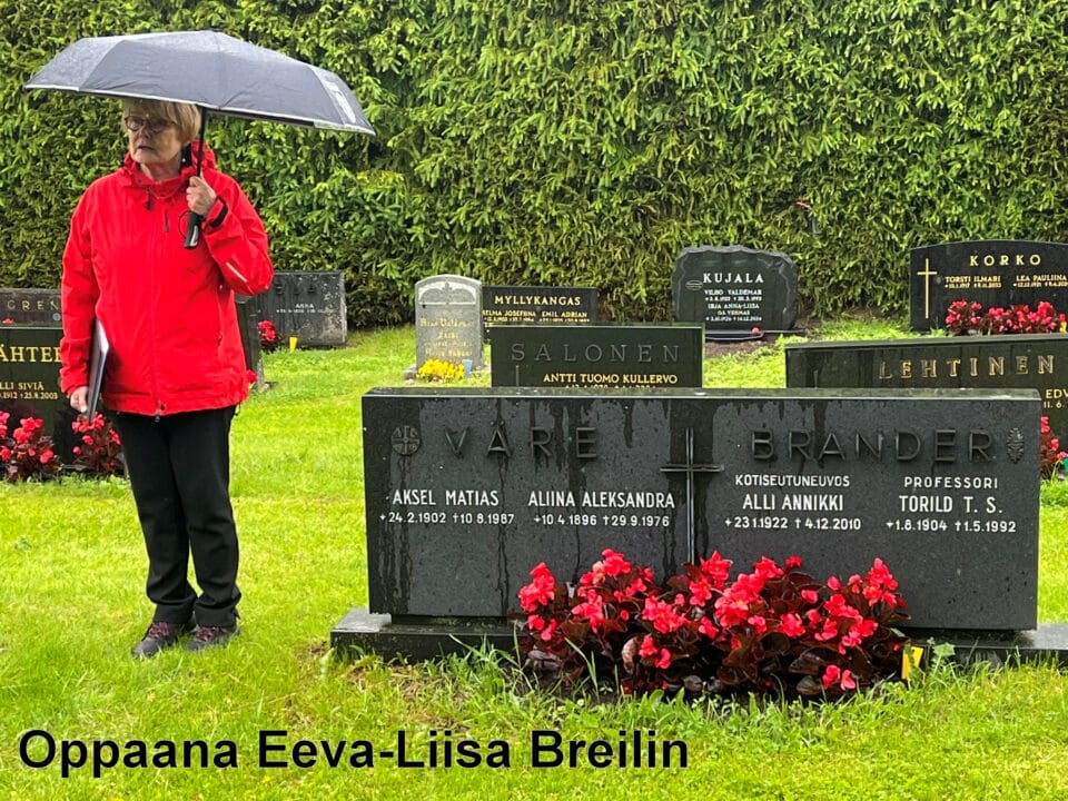 Perinteinen kesän tapahtuma, torstaitupa ja hautausmaakierros puheenjohtaja Eeva-Liisa Breilinin opastamana